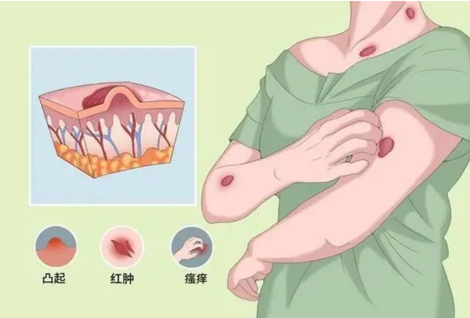 过敏反应:接触化纤衣物、某些药物或化妆品时,引发过敏反应,释放组胺等介质,导致红肿、瘙痒。