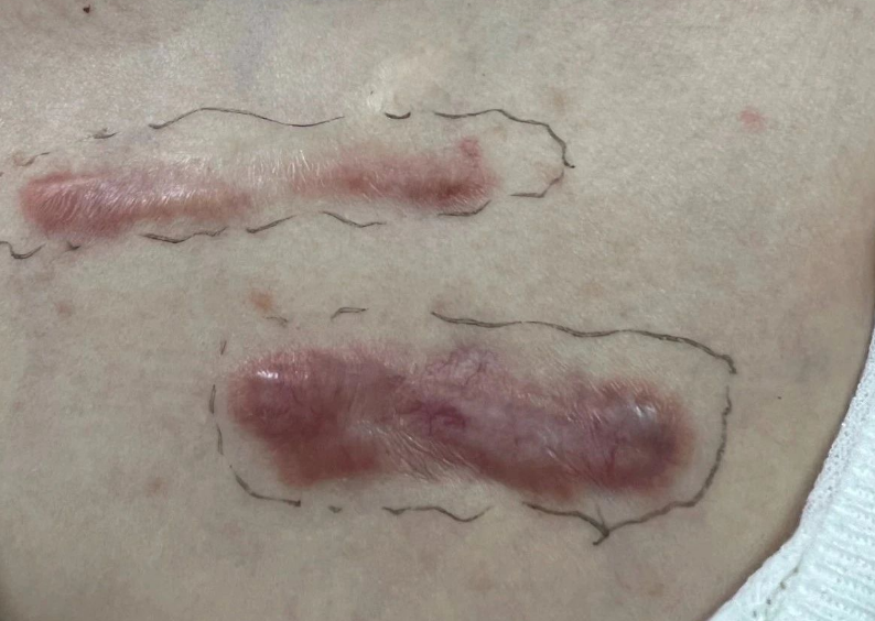 增生性疤痕:硅胶贴、激光治疗或药物注射(如糖皮质激素)抑制胶原合成。