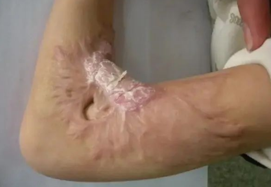 挛缩性疤痕:手术松解挛缩带联合植皮,配合压力疗法和康复训练恢复关节功能。