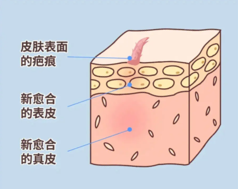 当皮肤损伤达到网状真皮层时,成纤维细胞会过度增殖并分泌大量无序排列的胶原蛋白,导致瘢痕组织异常增生。若伤口继发细菌感染,炎症反应会延长,刺激巨噬细胞持续释放转化生长因子,促使肌成纤维细胞活化,进一步加剧瘢痕增生。